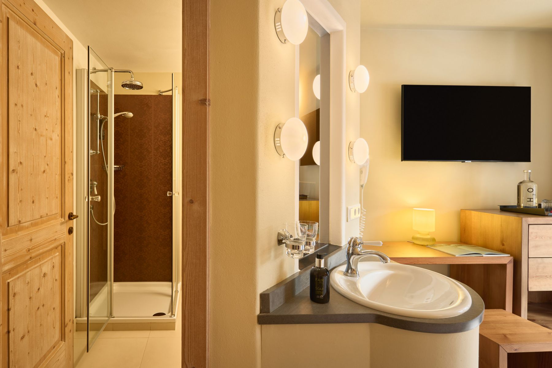 Finden Sie innere Ruhe im Olive Zimmer, wo die Atmosphäre an einen friedlichen Olivenhain erinnert. Lassen Sie sich von den bezaubernden Aussichten auf Lavarella und Piz La Ila von Ihrem privaten Balkon inspirieren. Entspannen Sie sich und lassen Sie sich von der Ruhe dieses Zimmers, durchdrungen von den Düften und Farben der Natur, umhüllen.
