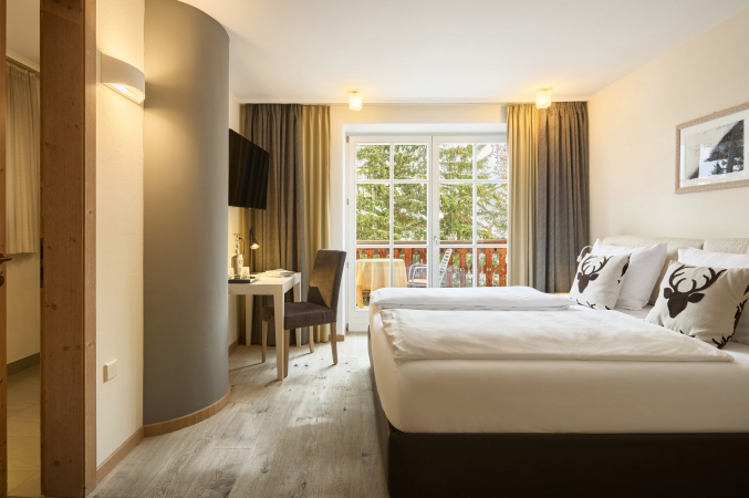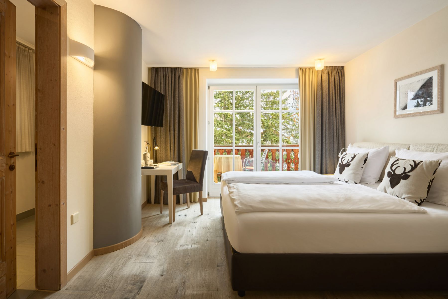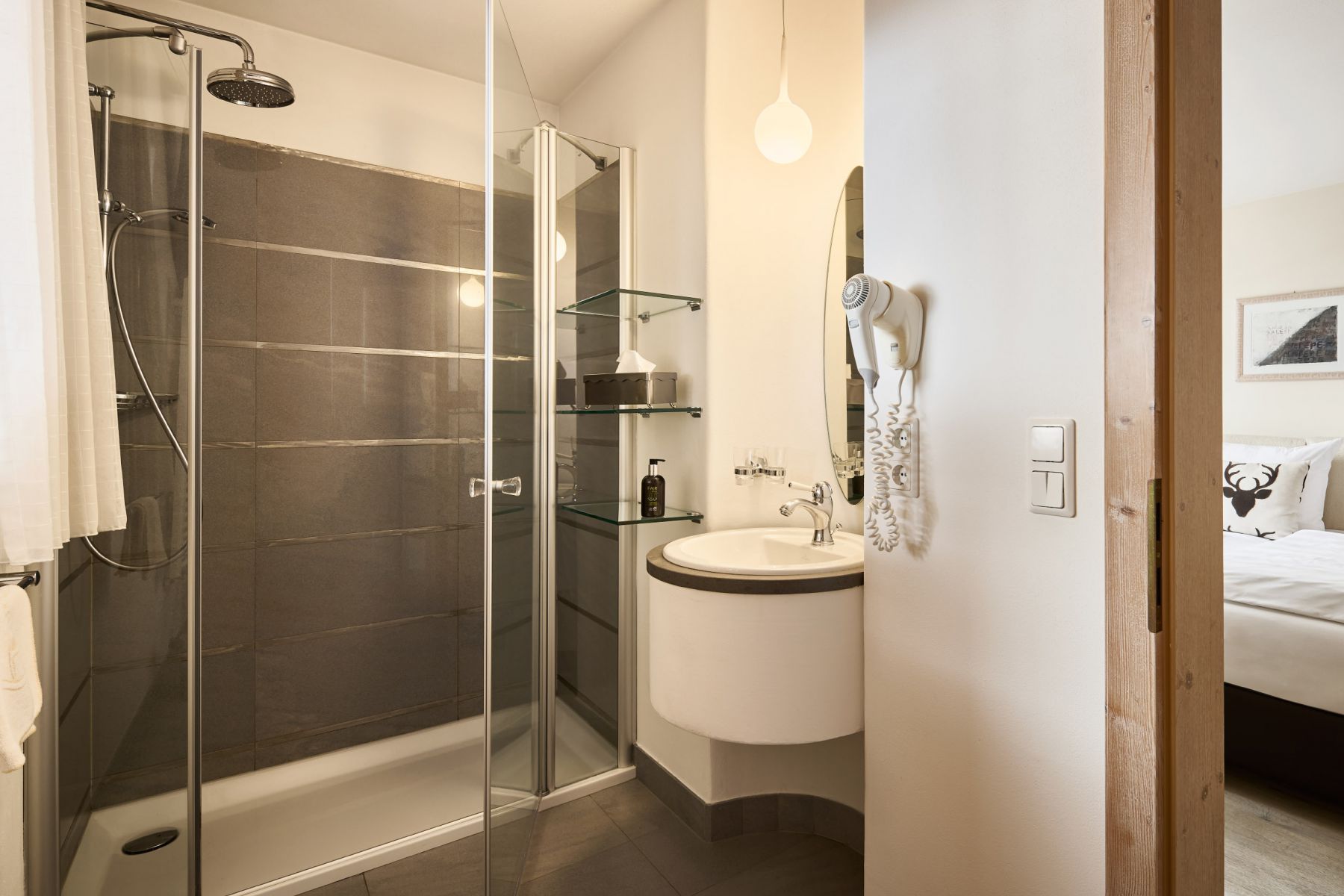 Sale e Pepe ist ein modernes Doppelzimmer, eingerichtet mit einer verführerischen Mischung aus Minimalismus und Liebe zum Detail. Helle Farben und die geräumige Dusche schaffen eine helle und entspannende Umgebung. Der Balkon auf der Südostseite bietet einen herrlichen Blick auf die Dolomiten von Fanes. Entspannen Sie sich und genießen Sie einen Aufenthalt voller Komfort und Schönheit.